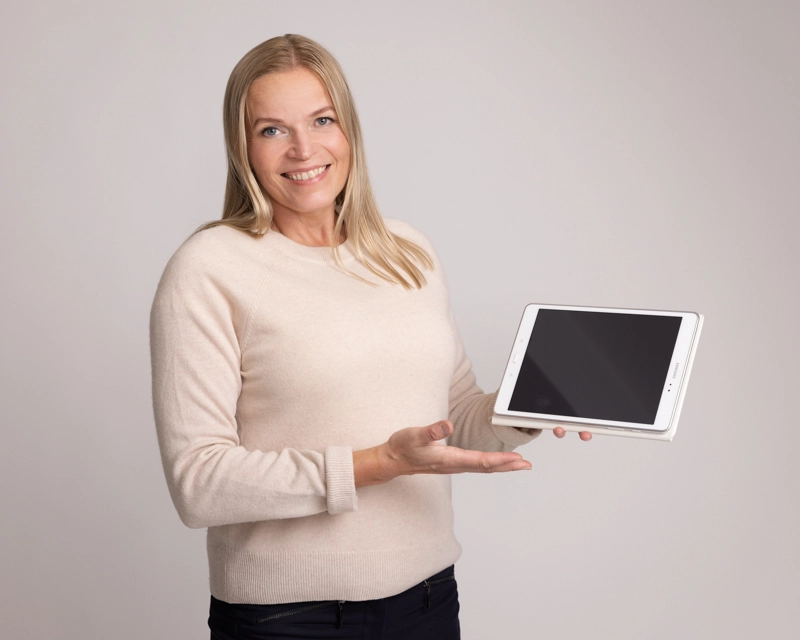 Asiakas halusi taustaksi neutraalin harmaan, joten sen kanssa lähdimme kuvaamaan hyödyntäen yllä mainittuja rekvisiittoja. Ja lopputuloksen näetkin alta!